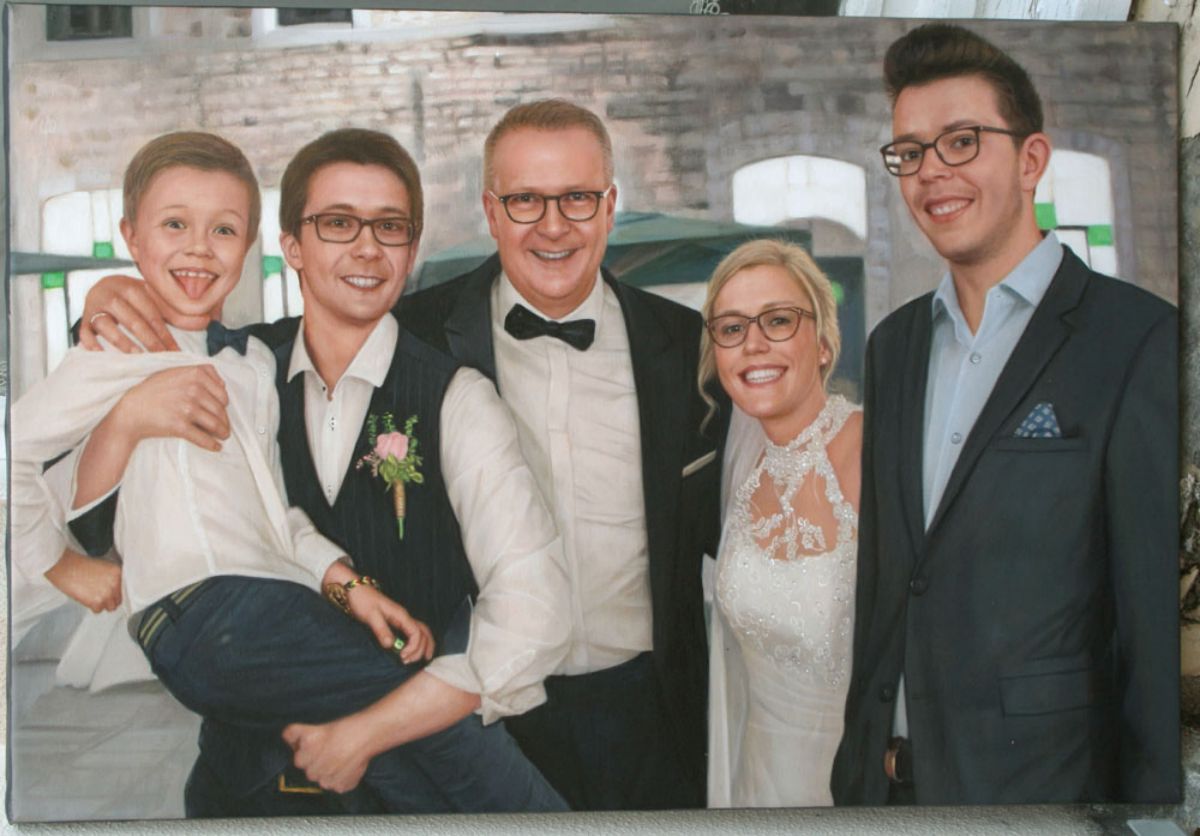 Le prix d’un portrait à l’huile d’après photo varie de 240 € à 850 €, selon le format choisi et le nombre de personnes représentées.