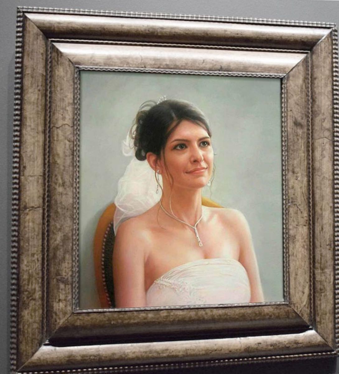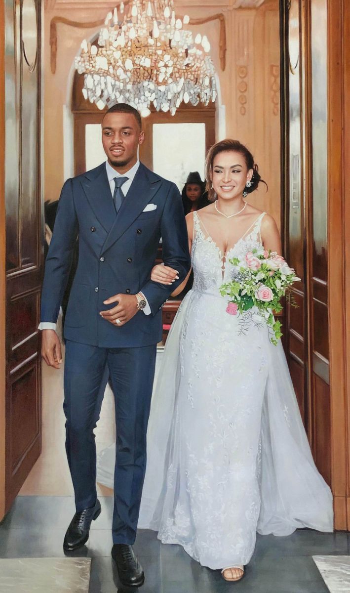 Un portrait de mariage peint à la main permet de prolonger l’émotion de ce jour unique. À partir de vos photos, je réalise une toile travaillée à l’huile, en mettant en valeur le couple, la tenue et la lumière du moment. Chaque détail est peint avec soin pour restituer la complicité et l’élégance de cette journée inoubliable.